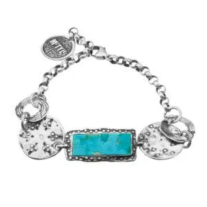 Delikatne srebro o organicznej strukturze otula naturalny turkus – kamień harmonii i szczęścia,
