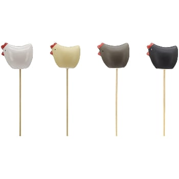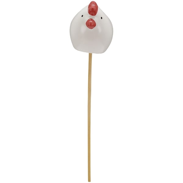 Wzbogać swój ogród o urokliwy, rustykalny akcent dzięki ceramicznej kurze na patyku.