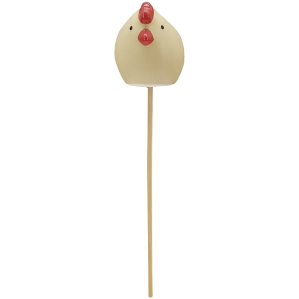 Mała kura, osadzona na solidnym patyku, jest idealnym dodatkiem do ogrodu, rabatek, czy kwietników. Idealnie komponuje się w doniczce kwiatowej lub w wazonie z np. tulipanami.