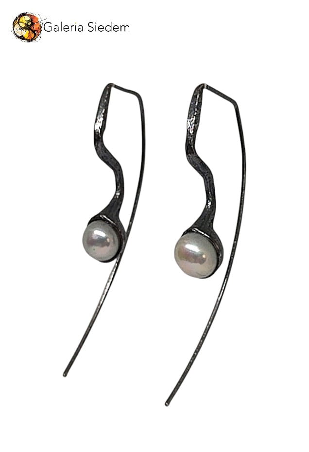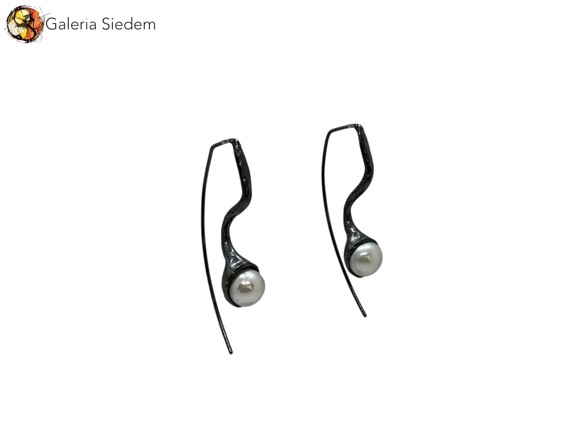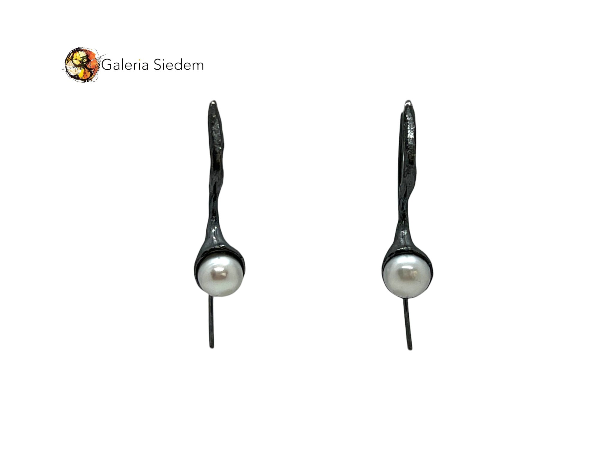 Kolczyki “Pearl in the nest” – srebro oksydowane i perła słodkowodna