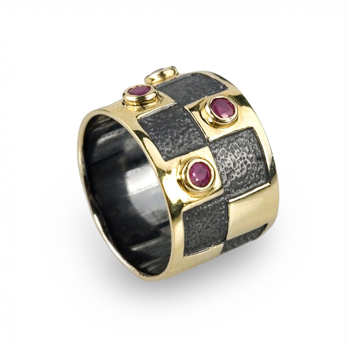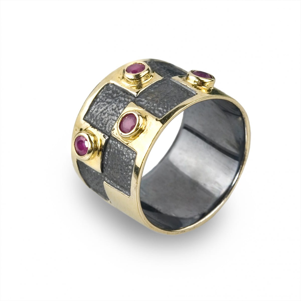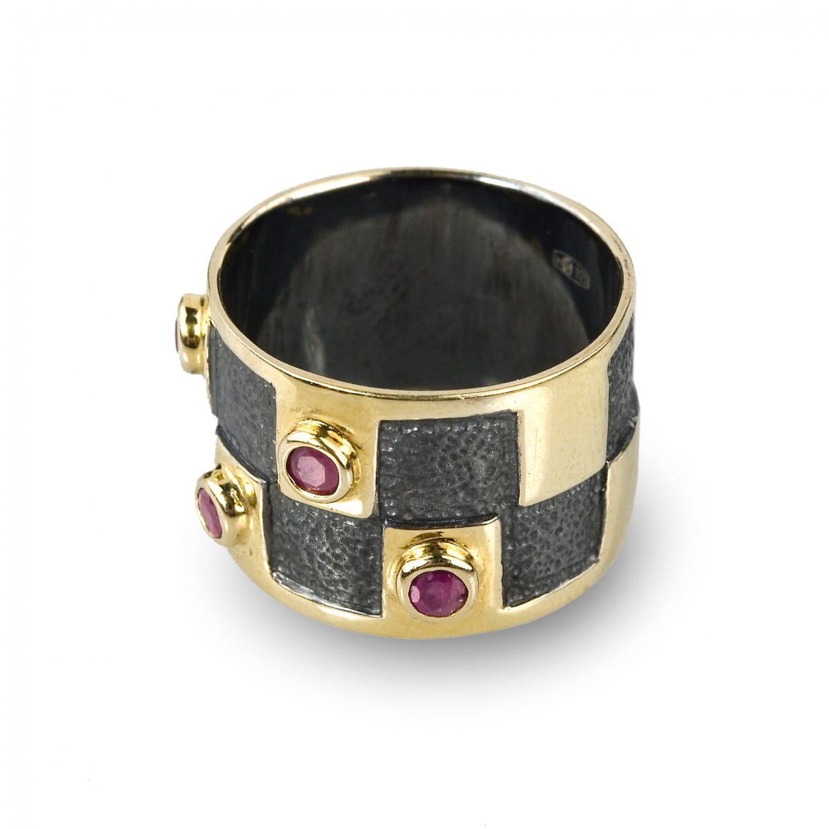 Ekskluzywna obrączka wykonana z rutenowanego srebra, próba: 925, złocona 14K złotem