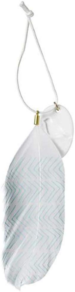 Zawieszka z ręcznie wykonaną porcelanową ozdobą i delikatnie drukowanym piórkiem na bawełnianej wstążce.